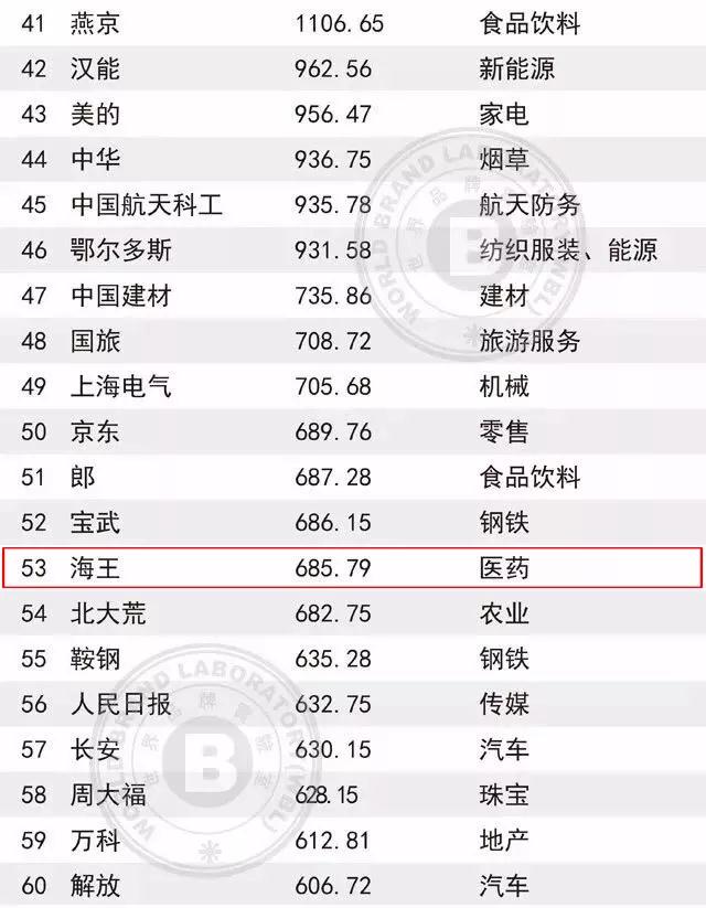 在這份基于財務數據、品牌強度和消費者行為分析的年度報告中,“海王”品牌以685.79億元人民幣連續十五年位列中國500價值品牌醫藥行業榜首,較去年增長了114.11億元。