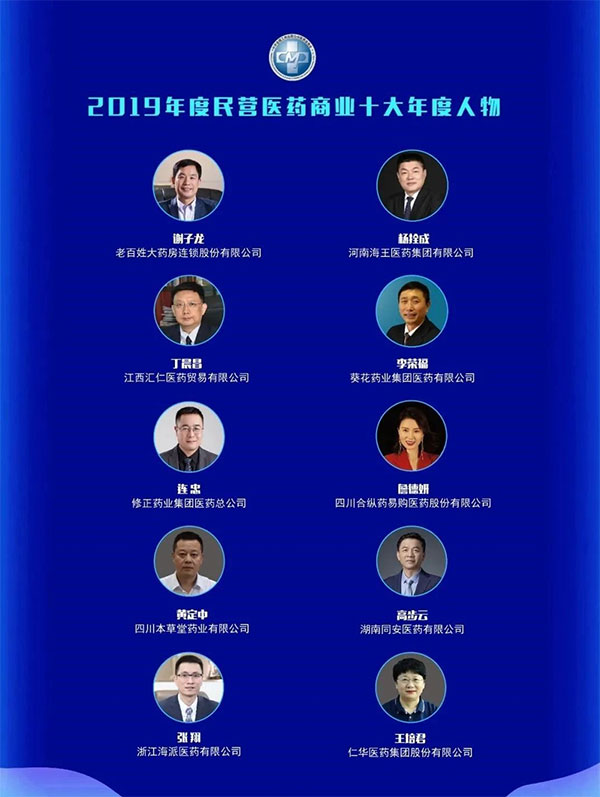 中國醫藥商業協會副會長、中國中藥協會艾草委員會副主任、海王生物常務副總裁、河南海王集團總裁楊拴成榮膺2019年度民營醫藥商業十大年度人物。