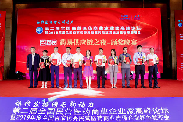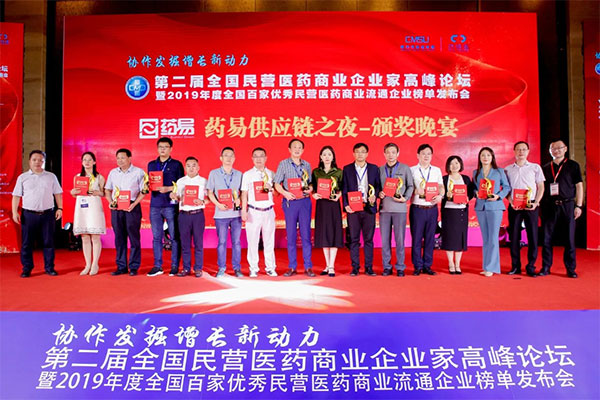 2020年9月11日,由全國工商聯醫藥業商會醫藥商業分會主辦的第二屆全國民營醫藥商業企業家高峰論壇暨2019年度全國百家優秀民營醫藥商業流通企業榜單發布會于成都舉辦,評選出了全國百家優秀民營醫藥商業流通企業、十大年度人物、拓進人物等獎項,本次評選活動邀請了全國各省市的商協會、行業內學者、企業家、支持單位嘉賓為民營醫藥企業發展助力。